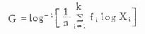 即对数数值的均数X;(3)将X取反对数即得几何均数1og-1X=G。这里不难理解,若将这种资料作对数变换后,即可用式(4.6)至式(4.9)的各式计算均数,得到结果后再取反对数即得几何均数。读者可自已验证。